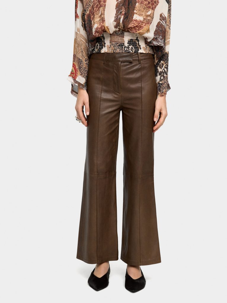 Brown Leather Flare Trousers