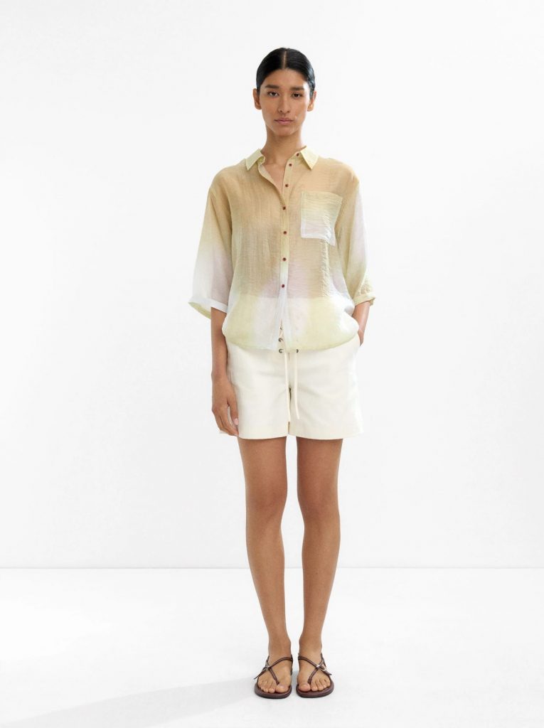 This shirt is crafted from smooth lyocell fabric and features a subtle gradient effect that creates a refined yet contemporary look. The breathable and fluid texture offers exceptional comfort while maintaining an elegant drape. Designed for warm weather and effortless styling, it pairs easily with trousers, denim, or layered looks for both casual and semi-formal occasions.