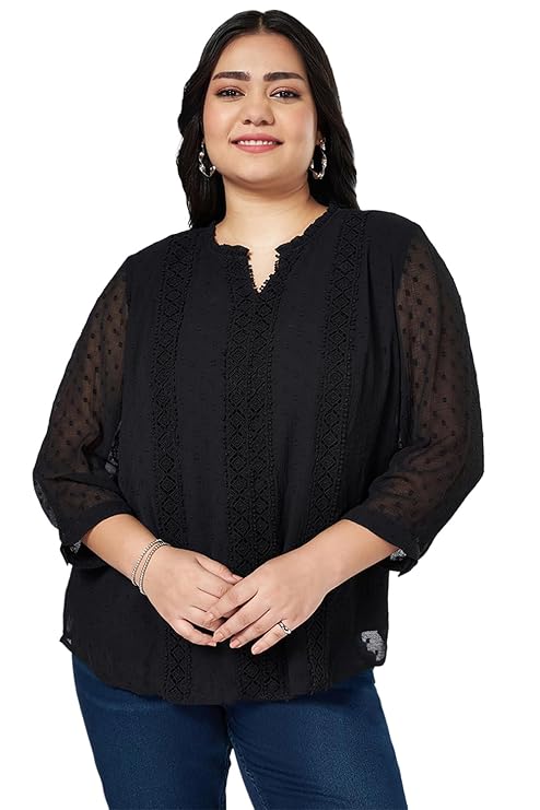 Honey Curvytude by Pantaloons Women’s Dobby Regular Fit Top