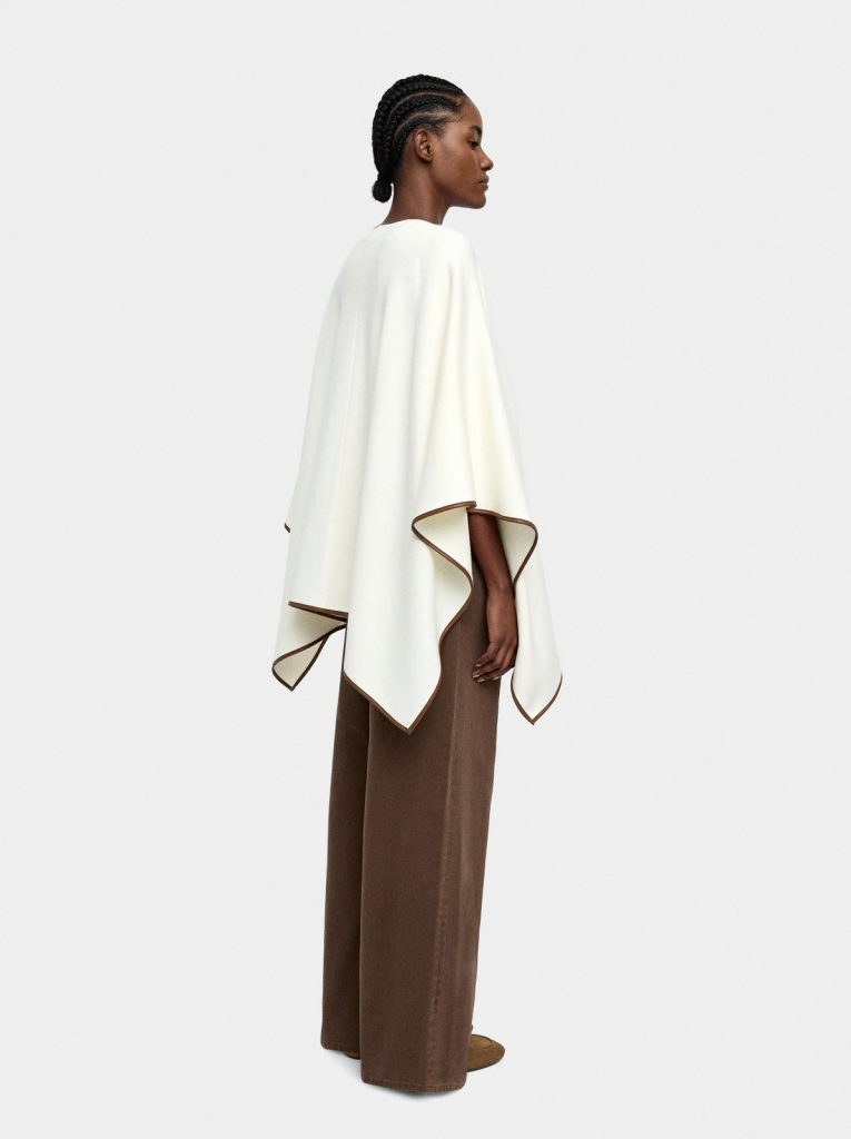 This knitted poncho is designed with visible stitching details that add texture and depth to its clean silhouette. Crafted from soft knit fabric, it offers warmth and comfort while remaining lightweight for easy layering. The white tone brings a fresh and versatile look, making it easy to style over both casual and semi-formal outfits. Ideal for transitional weather, this poncho blends simplicity with refined detailing.