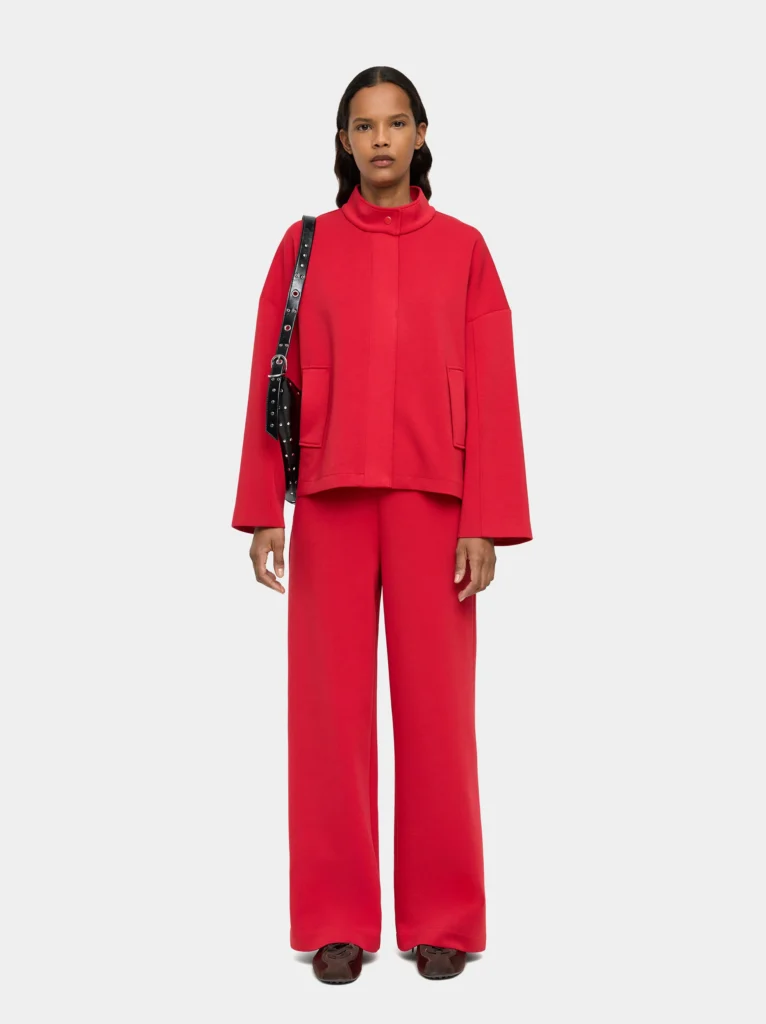 Light Cotton High-Neck Jacket – Red