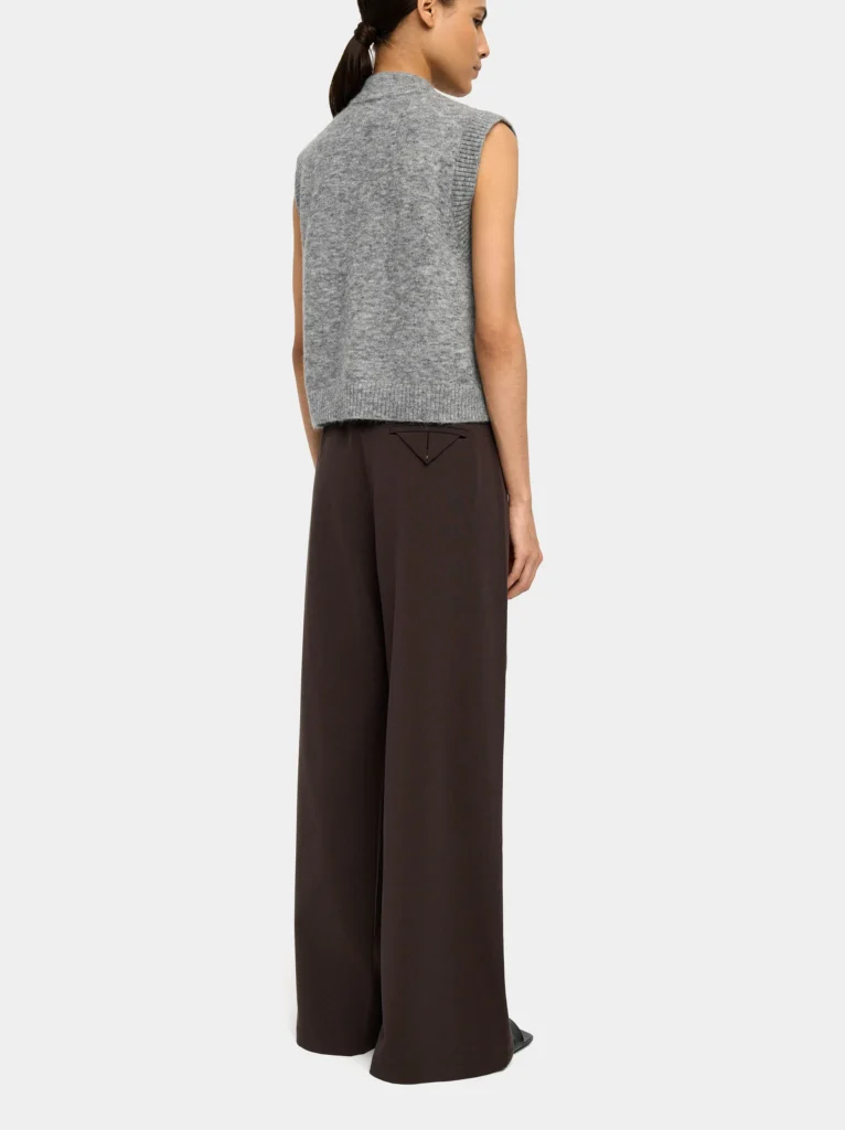 These fluid trousers combine soft pleats with a straight cut for an elegant, easy-to-wear profile. Equipped with side pockets, belt loops and a discreet button-and-hidden-zip fastening, they transition seamlessly from office to evening.