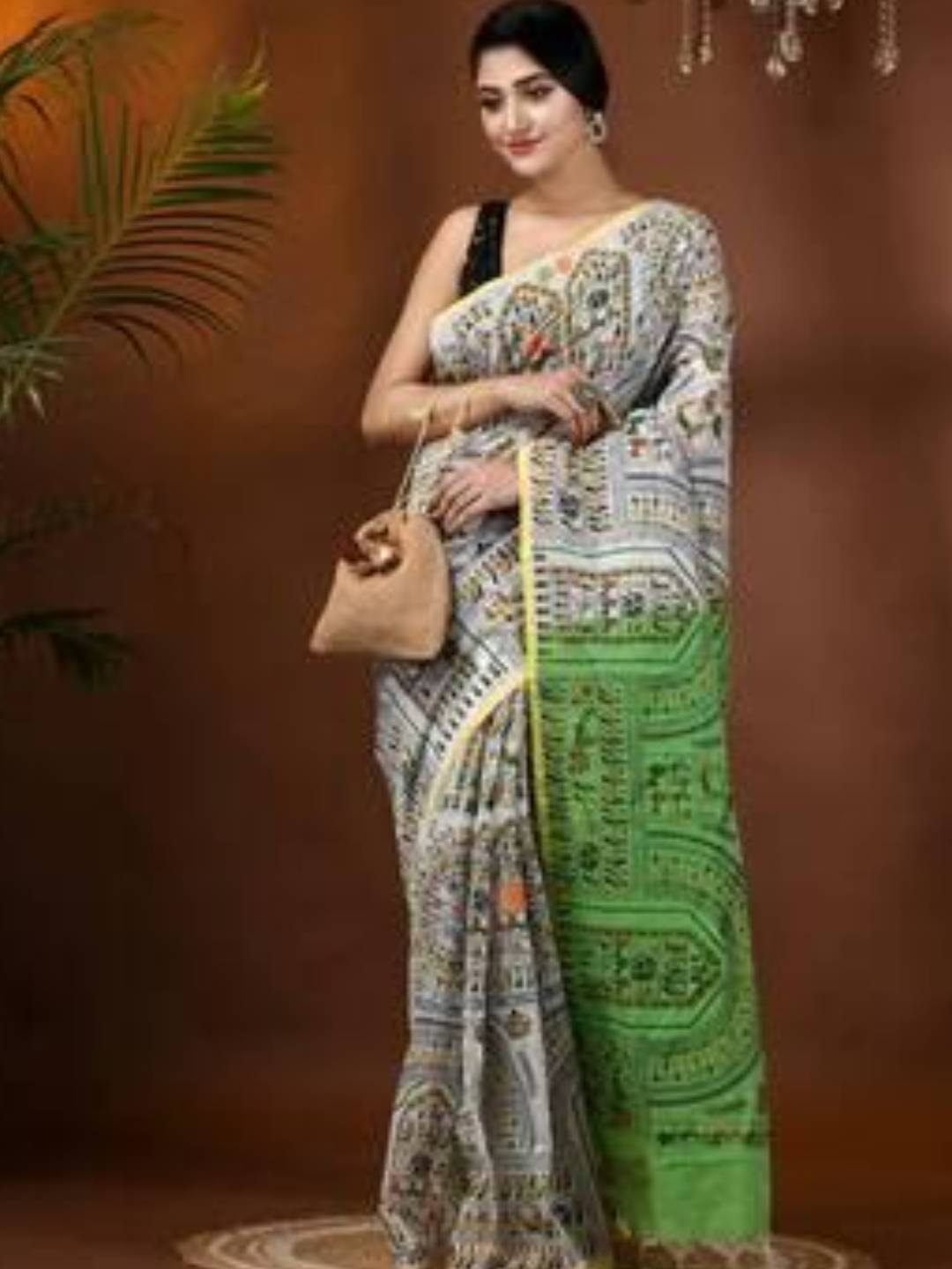 Printed Cotton Silk Handloom Saree with Contrast Border