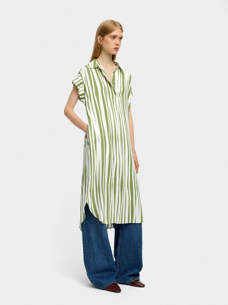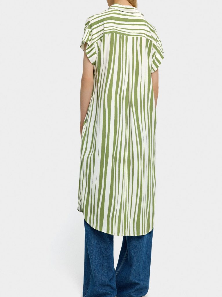 This multi-striped shirt dress offers a timeless silhouette with a vibrant pattern that adds visual interest to everyday styling. Crafted with a relaxed fit and comfortable fabric, it provides ease of movement and breathability for all-day wear. The button-down design and midi length give it versatile appeal, suitable for both casual and semi-formal looks. Pair with sandals or sneakers for effortless styling that transitions from daytime errands to evening outings.