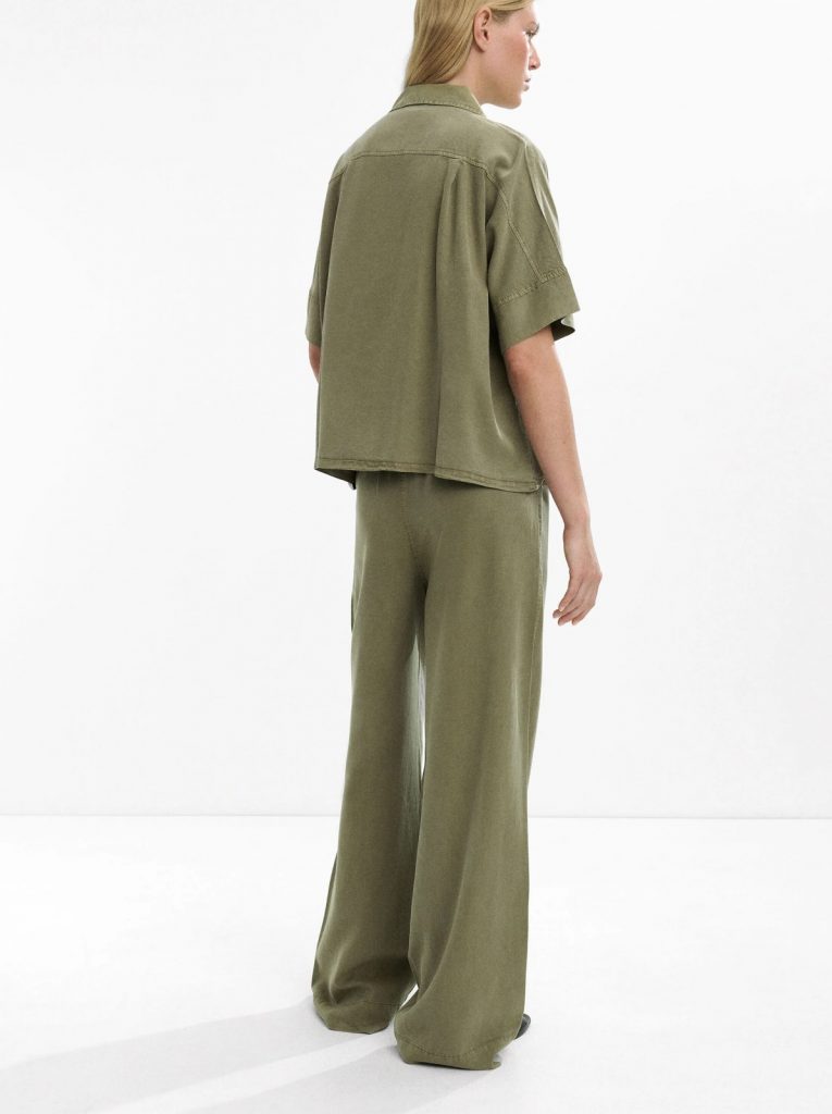 This utility-inspired shirt features a sleek zip fastening and functional pocket detailing, combining contemporary design with everyday practicality. Crafted from breathable fabric, it offers comfort throughout the day while maintaining a structured silhouette. The olive green tone adds versatility, making it suitable for casual wear, travel looks, or elevated street styling.