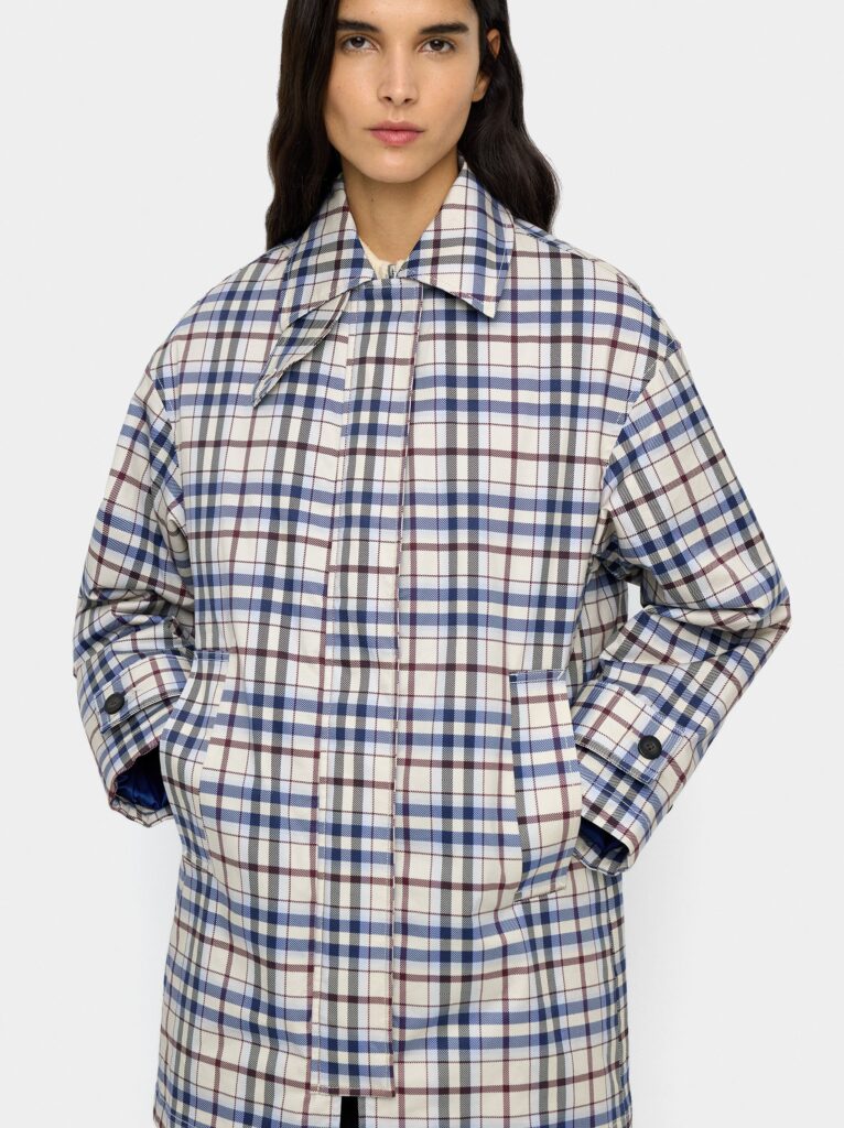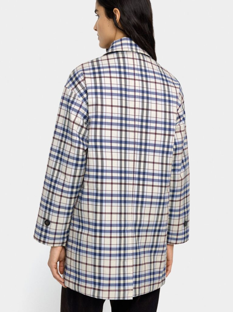 A tailored long coat in mixed tones offering a timeless silhouette and practical pocketing. With refined lapels and hidden fastenings, this coat layers effortlessly over workwear or weekend outfits. The versatile neutral palette makes it a versatile seasonal staple.