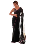 Material composition Georgette Weave type Plain Occasion type Festival, Party, Wedding, Casual, Ceremony Pattern Striped Care instructions Dry Clean Only Color: Black Saree || Black Blouse Fabric: Georgette Saree || Georgette Blouse Print Or Pattern: Solid Saree || Embellished Blouse Saree Type: Party Wear Saree || Wash Care: Dry Clean Saree Length: 5.5 MTR || Blouse Length: 0.8 MTR